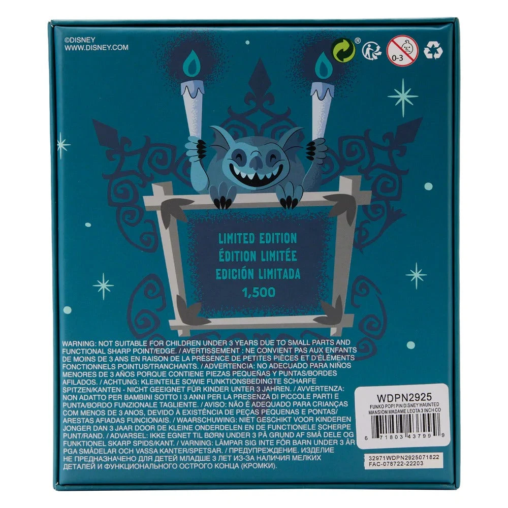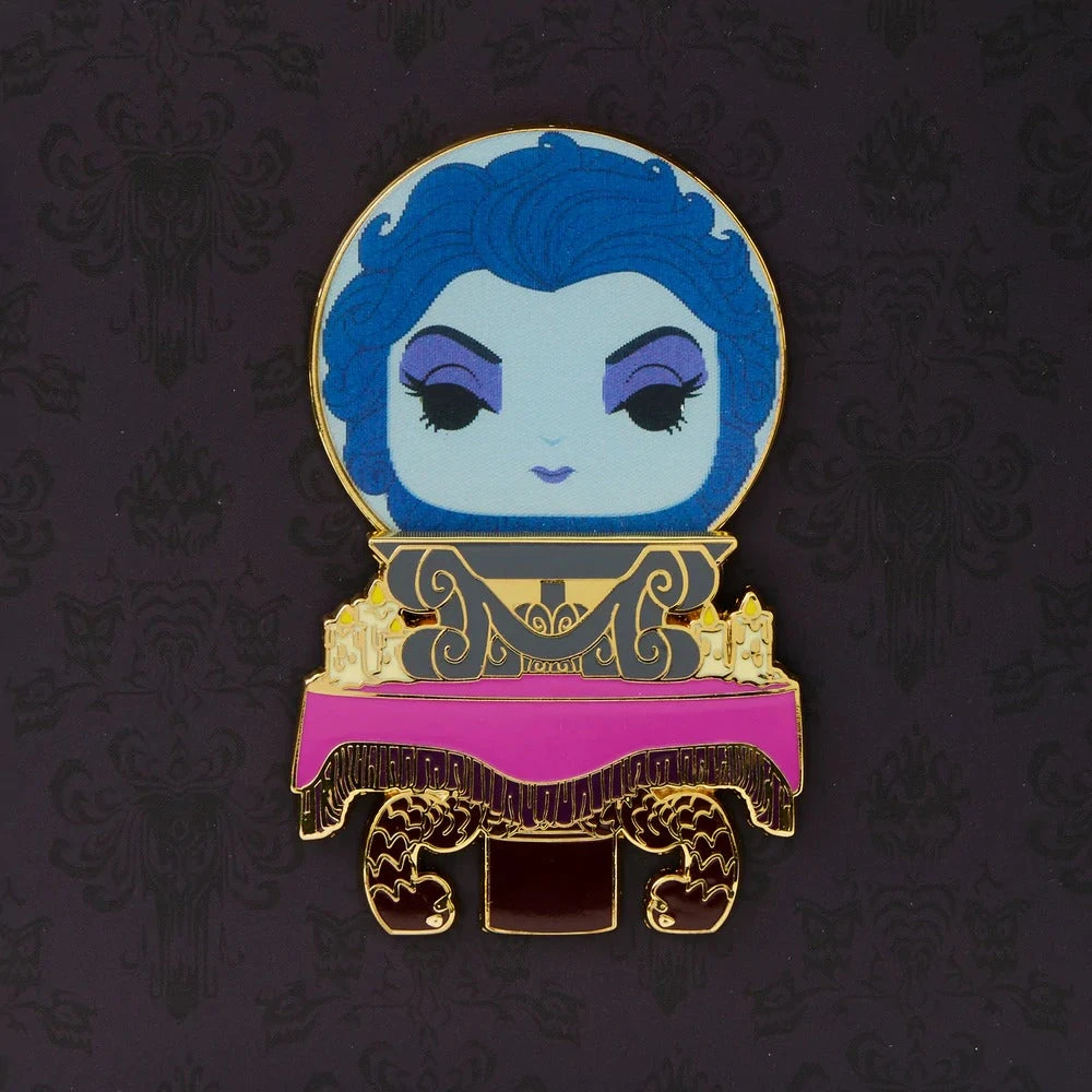 Awaken the spirits to receive a message from somewhere beyond. Perform a séance with the Haunted Mansion Madame Leota Lenticular Pin as it portrays a scene from the beloved theme park attraction. Tilting this pin in the light will summon Madame Leota in her crystal ball, portrayed in a Funko Pop! art style. This 3-inch pin makes a spirited addition to any outfit and is perfect for Disney fans who are looking to keep one of their favorite theme park moments close.