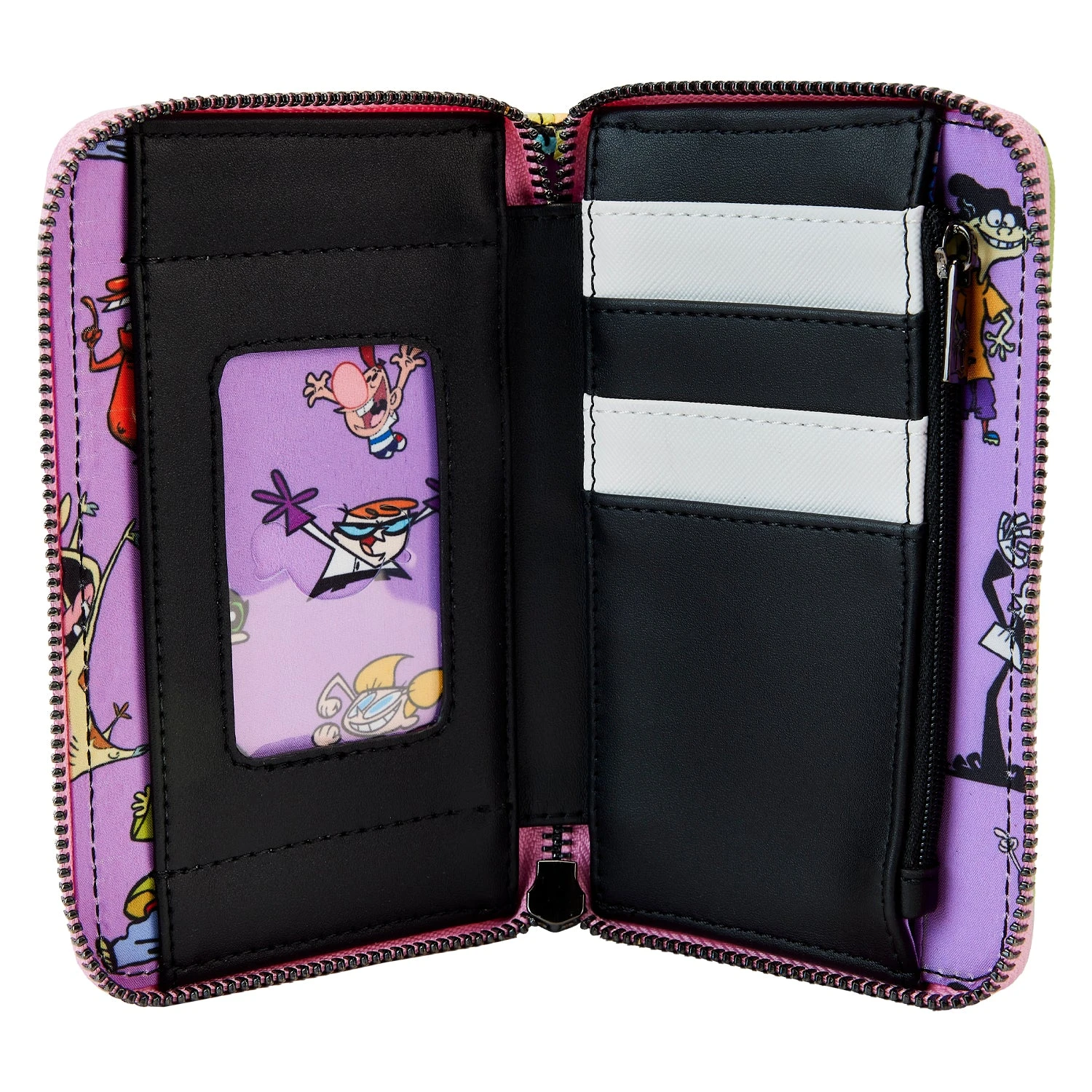 The Loungefly Cartoon Network Retro Collage Zip Around Wallet is made of vegan leather (polyurethane). Wallet zips closed with gunmetal-colored hardware and features printed details. Take note of the coordinating inside lining.
