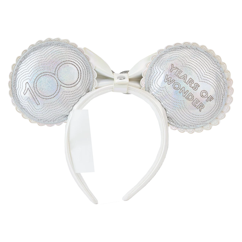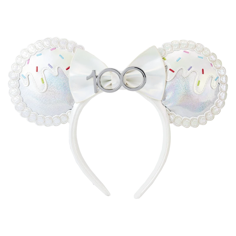 Get ready to party! The Loungefly Disney100 Celebration Cake Minnie Ears Headband invites you to join the celebration of a lifetime. On the front of the ears, a confectionary wonder takes shape in the form of an anniversary cake. Embroidered sprinkles accompany the cake’s debossed icing, and the number 100 appears on a detachable 3D bow in the headband’s center. On the back, the phrase “100 Years of Wonder” is stitched on a silver background. This accessory makes a centerpiece for any Disney-themed outfit and will keep you looking sweet as you celebrate in style.