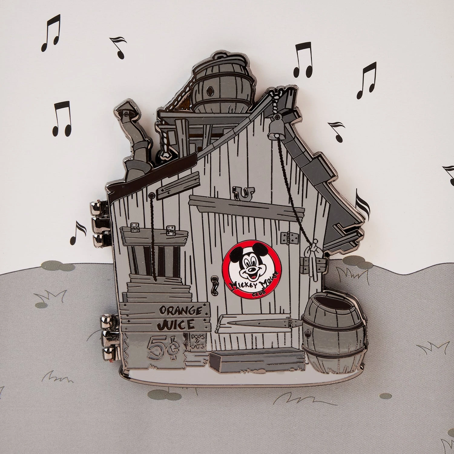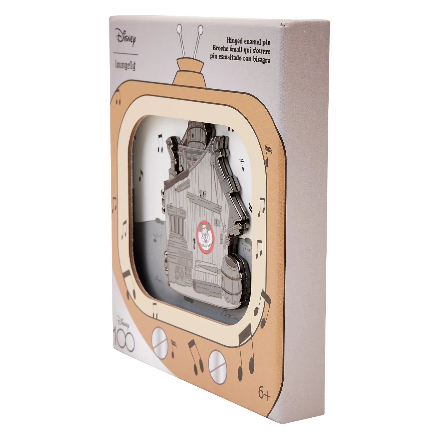 Calling all Mouseketeers! Join the jamboree with the Loungefly Disney100 Mickey Mouse Club Hinged Pin. Featuring a grayscale color palette inspired by the original television show, this pin takes the shape of the clubhouse from The Mickey Mouse Club. Open the pin to join Mickey and his friends for some musical fun! This retro accessory is a timeless addition to any outfit and is perfect for Disney fans of any age.