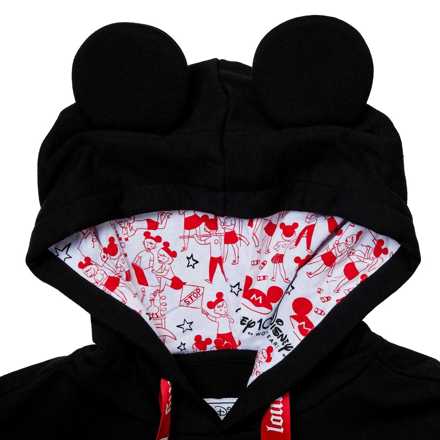 Calling all Mouseketeers! Join the jamboree with the Loungefly Disney100 Mouseketeers Varsity Unisex Hoodie. Reflecting a sporty varsity design, this pullover sweater displays a retro Mouseketeers logo embroidered on the front. One sleeve features the Mouseketeers title, while the other shows Mickey Mouse as he marches with a drum. Don your mouse ears by popping up the hood, which is lined with an allover Disney100 print! A timeless addition to any Disney wardrobe, this cozy hoodie is perfect for fans young and young at heart.