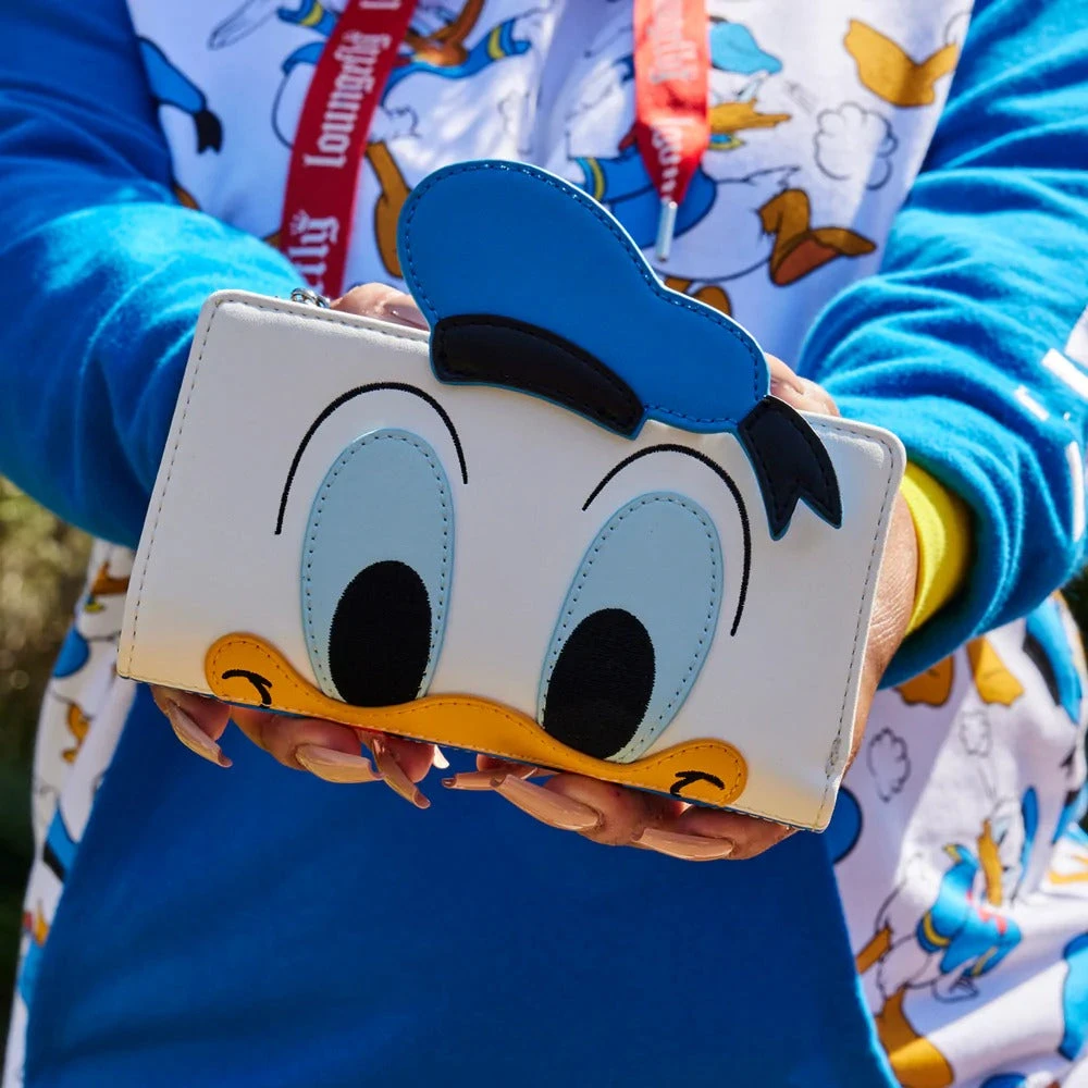 Donald Duck is coming in for a landing to ride with you on your next adventures with this Donald Duck Cosplay Wallet. On the front of the wallet, Donald Duck’s face peeks out, his sailor hat rising up over the top. The back of the wallet includes his signature red bow. This bifold wallet is a great accessory for any Disney outfit.