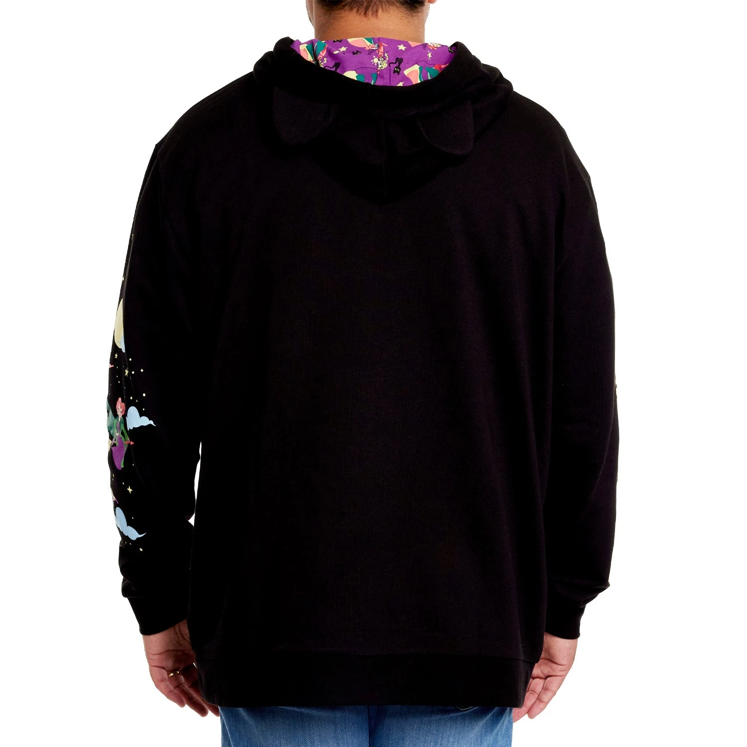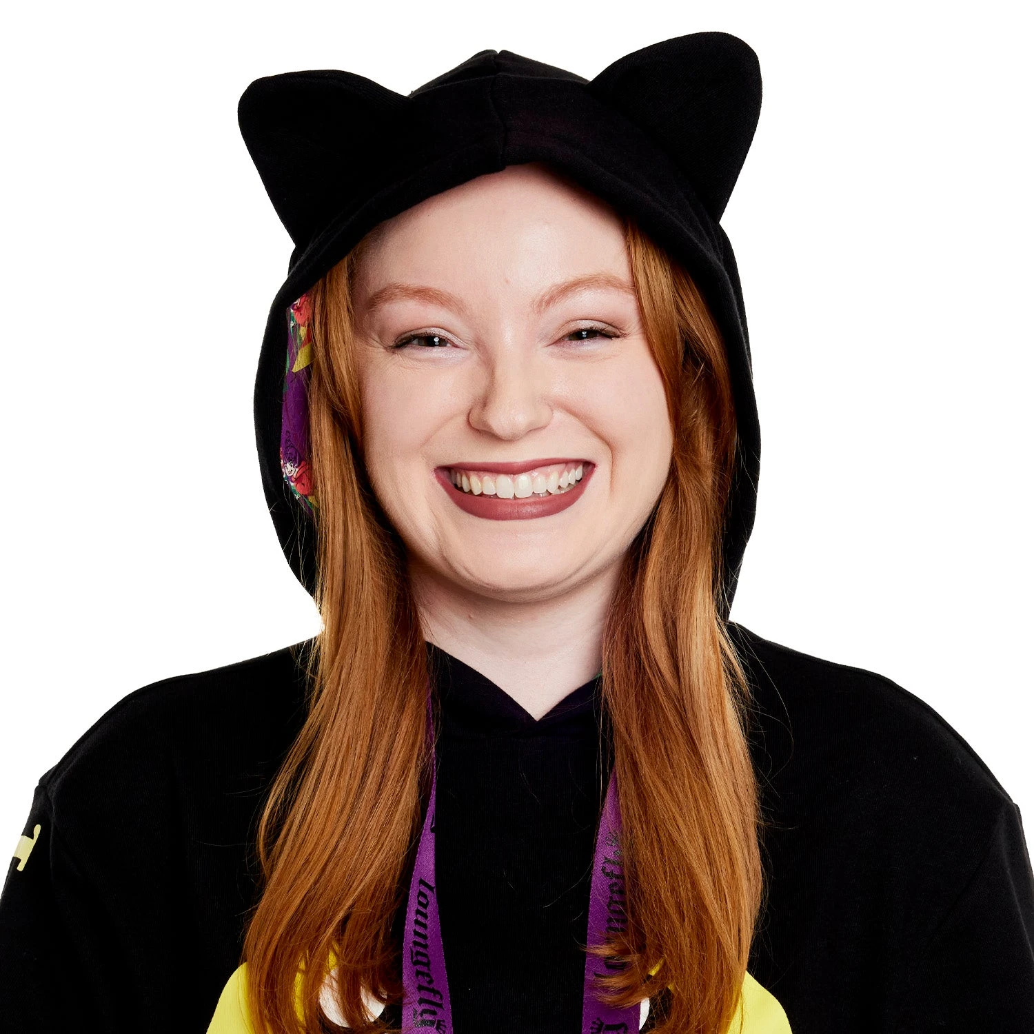 Slip through the shadows and moonlit streets in style with our Loungefly Disney Hocus Pocus Binx Hoodie. This spellbinding, comfy hoodie features Binx’s bright yellow eyes, which glow in the dark! Adorable cat ears stick out from the hood, and Binx’s tail curls around the Black Flame Candle on the front pocket. On one sleeve, you’ll find the words, “I put a spell on you,” and on the other sleeve, you’ll find all three Sanderson Sisters. Visit your favorite haunts in bewitching style with this warm and eye-catching hoodie.