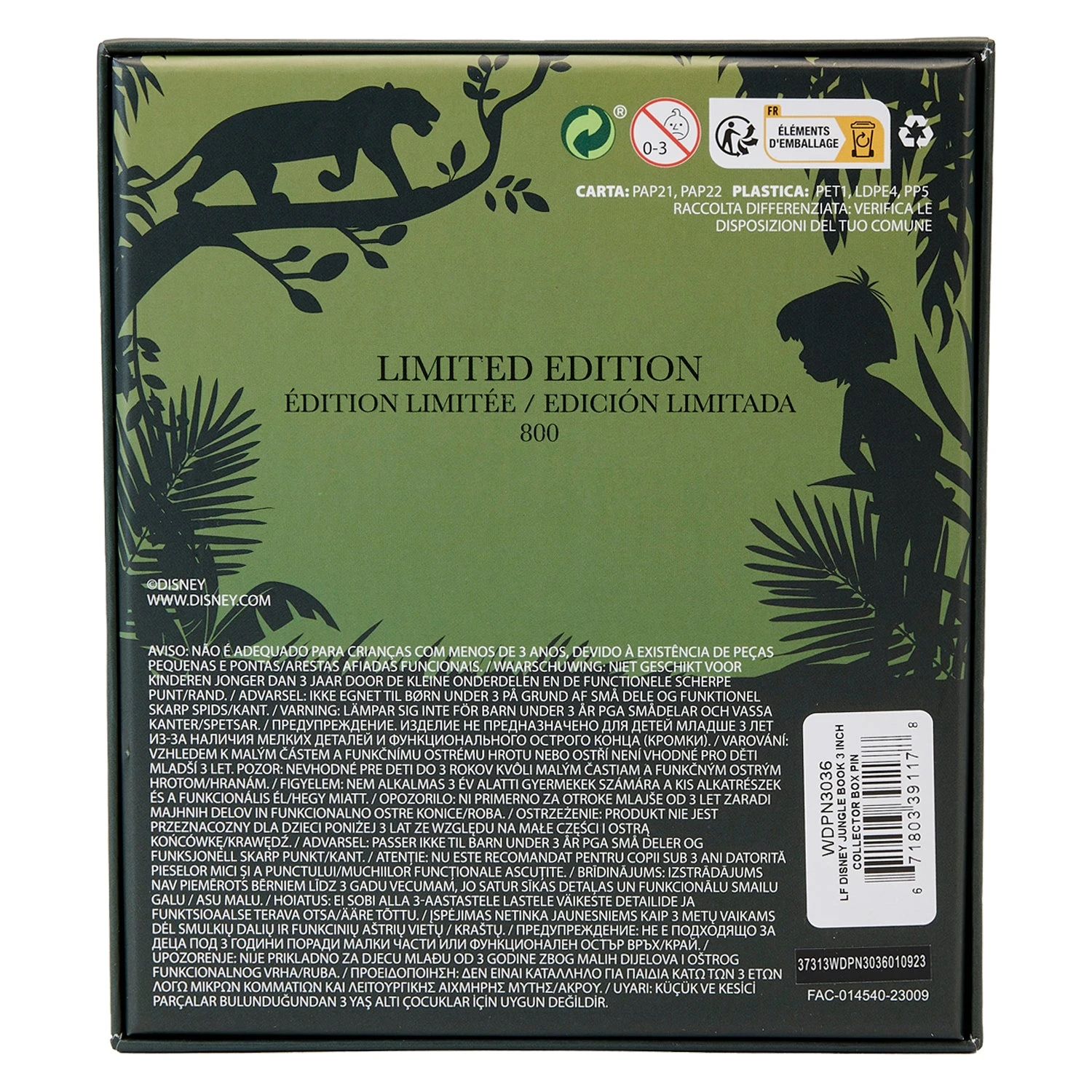 Another adventure for the books! Display our Loungefly Disney The Jungle Book 3-Inch Collector Box Pin and let the fun begin. This beautiful interpretation of a Disney classic book features a “front” cover with gold lettering. Cherished characters gather in the jungle, including Mowgli, Baloo, and Bagheera. Open the book, and you’ll find delightful, in-house, original art drawn as illustrations on pages. You might see key moments from the story involving Mowgli, Kaa, Shere Khan, Baloo, Hathi Jr., and more. It’s the perfect way to show off your fandom and hold your favorite animated moments close.