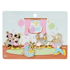 The gift table is all set, and the guests are ready to open presents! Unwrap the fun with our Loungefly Disney Mickey Mouse and Friends Birthday Celebration 4-Piece Pin Set. This collection features all your favorite Disney characters as guests at a birthday party, including Mickey and Minnie Mouse exchanging presents; Donald Duck and Daisy Duck exchanging presents; Goofy carrying a precariously stacked group of presents; and Pluto popping out of a box, with ribbons and bows. Take the celebration with you wherever you go and display your favorite fandom.