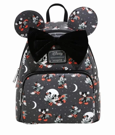 This faux leather mini backpack features exterior appliqué and embroidered details, a main zip compartment, front zip compartment, interior lining with an allover element symbols pattern, an interior zip pocket, metal plaque, and adjustable straps.