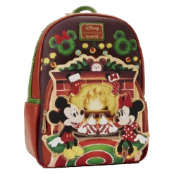 Pour a cup of hot cocoa and join Mickey Mouse and Minnie Mouse by the fire. Celebrate the warmth of the season with this Loungefly Disney Mickey Mouse and Minnie Mouse Fireplace with Cocoa Mini Backpack. Lenticular details of the fireplace reveal a warm and toasty fire that’s just perfect for Mickey and Minnie Mouse, who raise their whip-cream-filled hot cocoa cups in a toast. Holly decorates the mantel of the fireplace, and stockings await Santa’s arrival. Applique details bring the fireplace and the characters to life—and there’s a zipped compartment near the fireplace for storing extra holiday necessities. On the back, Pluto has a wish list for Santa. It’s the perfect accessory for dashing off to holiday-themed occasions—or for bringing a merry and bright spirit of the season to everyday outings.