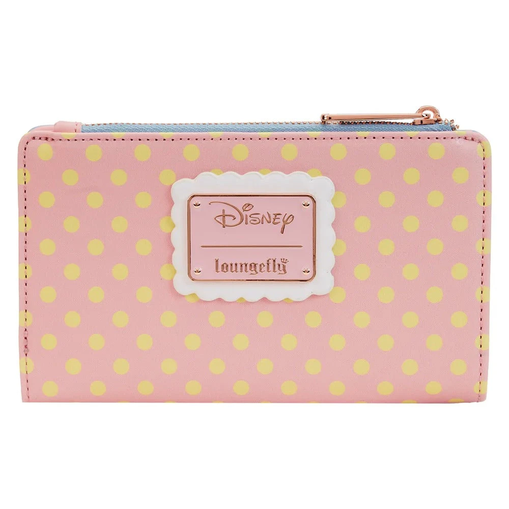 On the dot and always in style! We’re celebrating Minnie Mouse’s iconic 90s look with our Loungefly Minnie Mouse and Daisy Duck Pastel Color Block Dots Flap Wallet. Minnie and Daisy are teaming up for some fun! On the front, you’ll find Minnie whispering in Daisy’s ear. A field of blue, covered in pink polka dots, surrounds them in the background. On the back, a pink color block bursts with more polka dots, and scalloped trim adds a sweet touch. Inside, there are 4 slots on each side for holding cards, and a clear slot for holding your ID. Wherever you go, have fun totally rocking these dots!