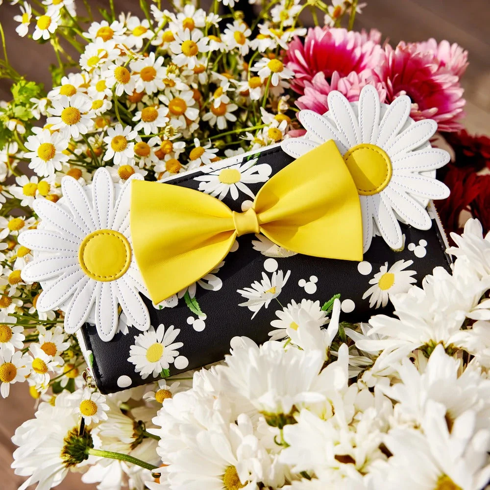 Get ready for spring with the Minnie Mouse Daisy Zip Around Wallet! The white daisies and polka dots stand out against the black background, adding a bright yellow zest to spring or even summer outfits. The wallet has 6 slots for holding cards, a clear window slot for holding your ID, and a zipper pocket. This wallet will help you brighten the new year!