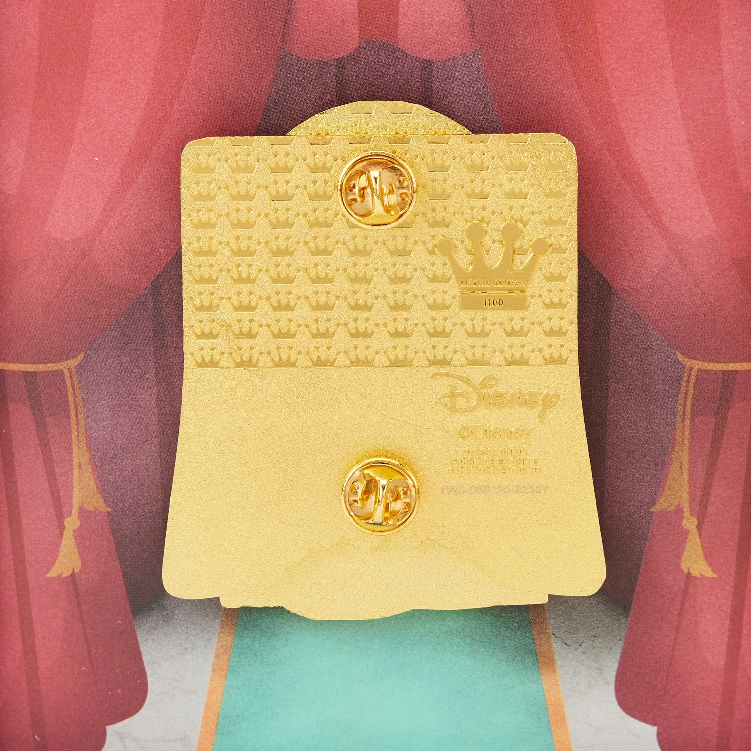 Pin has shiny gold-colored metal hardware and glitter details. The back has the signature Funko/Loungefly crown debossing, with a debossed crown that identifies the limited-edition piece count. Enamel pin is 3-inches tall and comes in a window display collector box.