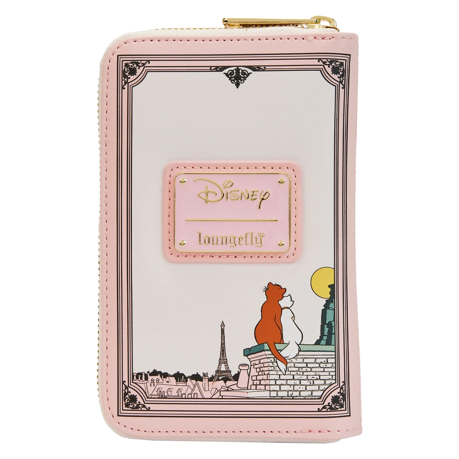 Turn a new page in your wardrobe! The Loungefly The Aristocats Book Zip Around Wallet makes a charming interpretation of an animated classic. Resembling a book cover, the front of this wallet features Thomas O’Malley, Duchess, and their kittens. The movie’s title appears on the wallet’s front and Duchess and O’Malley take in a romantic Parisian view on the back. With four slots for holding cards and a clear slot to hold ID, this accessory is sure to keep your belongings safe on any adventure.