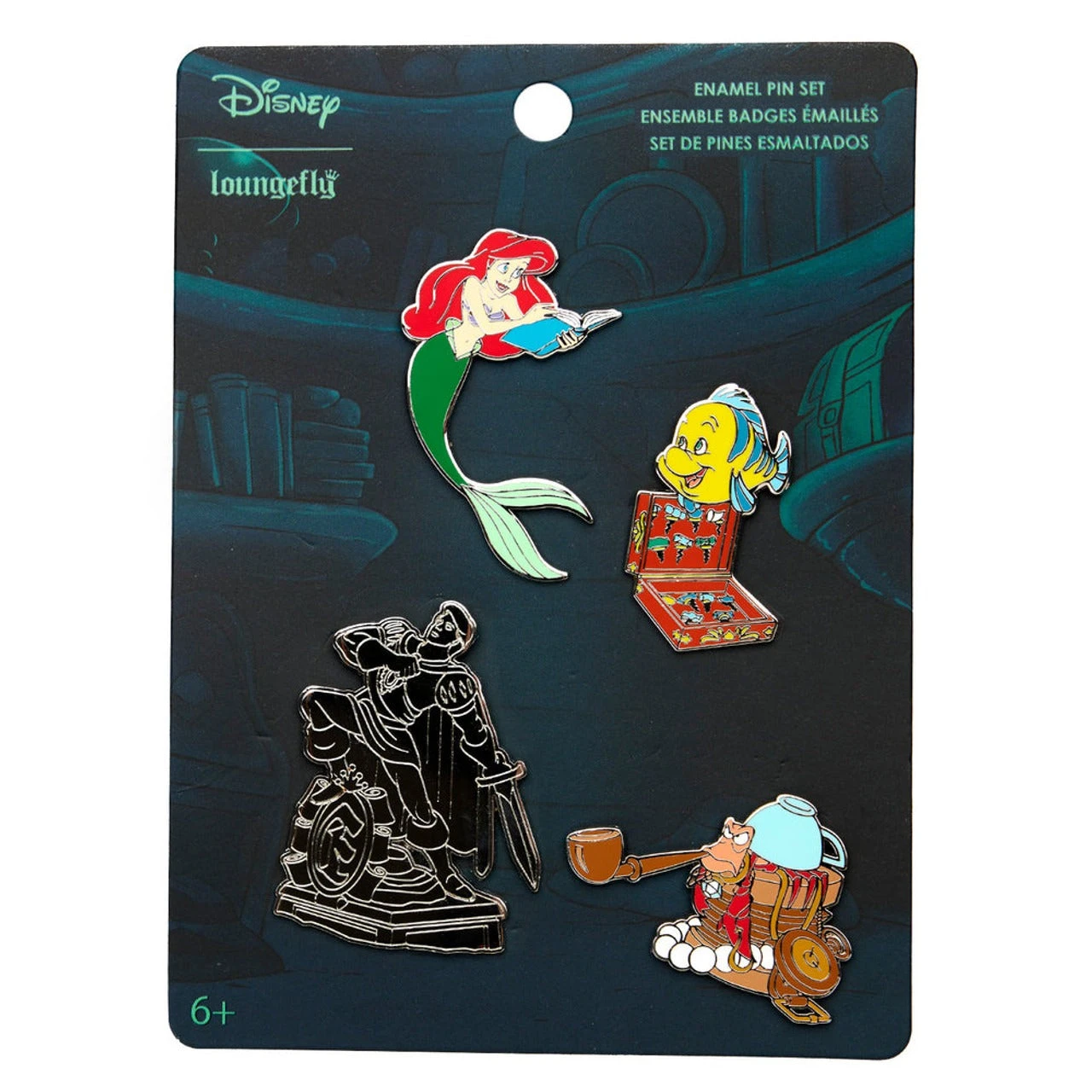 Pins are approximately 1.5 inches tall, with gold-colored metal hardware and signature Loungefly/Funko crown debossing on the back.