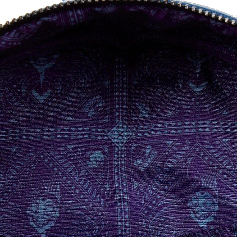A furious storm has cast Yzma into a rage as she struggles to rescue the potion that will turn Kuzko back into a human. Contain her wrath with this The Emperor’s New Groove Yzma Villains Scene Mini Backpack. On the front of the backpack, Yzma comes to life in applique detail, glaring down and over the image on the front zipped compartment of Kuzko and Pacha, climbing together between narrow cliffs, escaping with the potion. On the back, Yzma poses as a triumphant cat who momentarily manages to capture the potion. In fact, an enamel zipper charm of the potion, in glitter detail, completes the scene. This backpack is a great accessory for any Disney outfit.