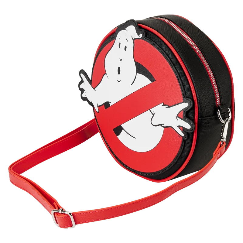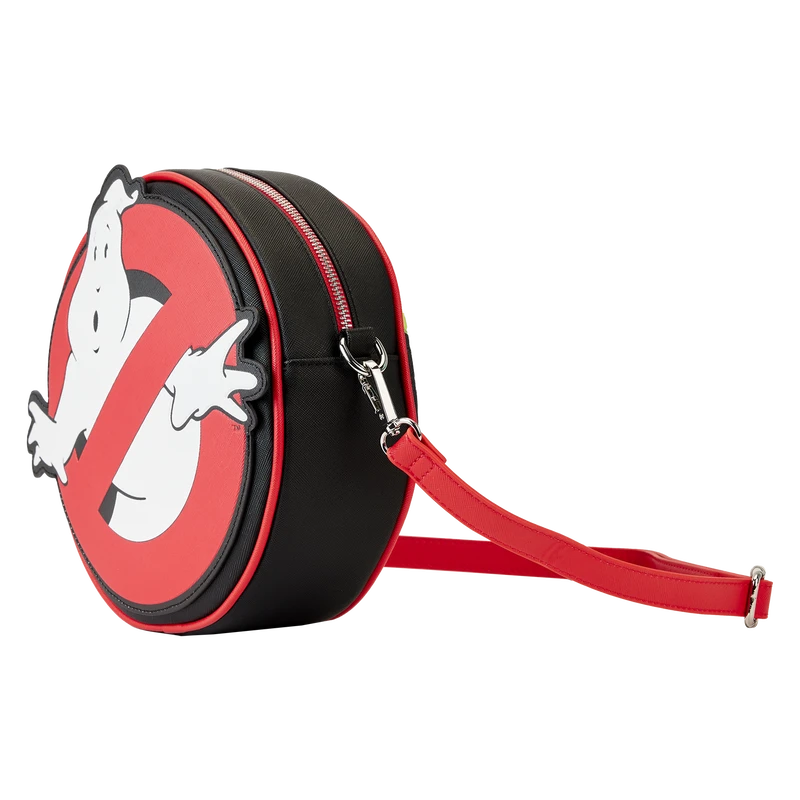 If paranormal activity suddenly materializes during your journeys, gear up! Prepare for adventures with our Loungefly Ghostbusters Logo Crossbody Bag. This spirited accessory is fully figural, in the circular shape of the classic movie logo. In the dark, the ghost in the middle of the red “no ghost” sign glows! An all-over debossed print, on the back, includes a motif of patterns of familiar images from the movie, including the marshmallow mascot, an encore appearance of the classic movie logo, and other surprises. Over the top of the reverse side, a mysterious green slime adds a wickedly fun touch. Pack just what you need to track ghosts in style!