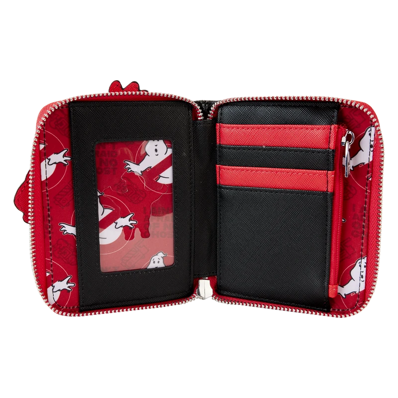 If paranormal activity suddenly materializes on your journeys, gear up! Prepare for adventures with our Loungefly Ghostbusters Logo Zip-Around Wallet. This spirited accessory features a circular applique, displaying the original movie logo. In the dark, the ghost in the middle of the red “no ghost” sign glows! An all-over debossed print includes a motif of patterns of familiar images from the movie, including the Stay-Puft Marshmallow Man, an encore appearance of the classic movie logo, and other surprises. Over the top of the reverse side, a mysterious green slime adds a wickedly fun touch. Inside, you’ll find 4 slots for holding cards and 1 clear slot for displaying your ID. There’s even a die-cut shape of the Stay-Puft Marshmallow Man over the clear ID holder! Stylishly secure your valuables while taking on pesky ghosts!