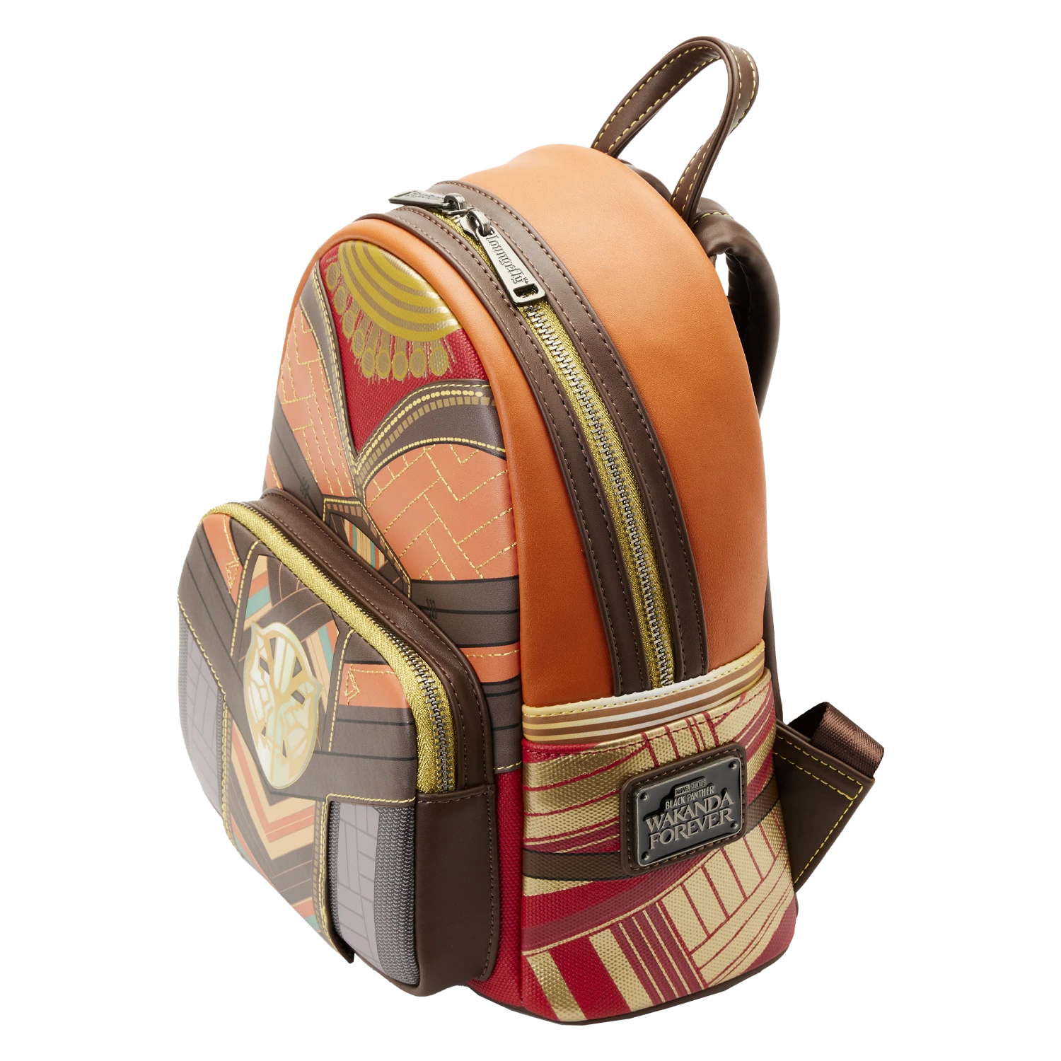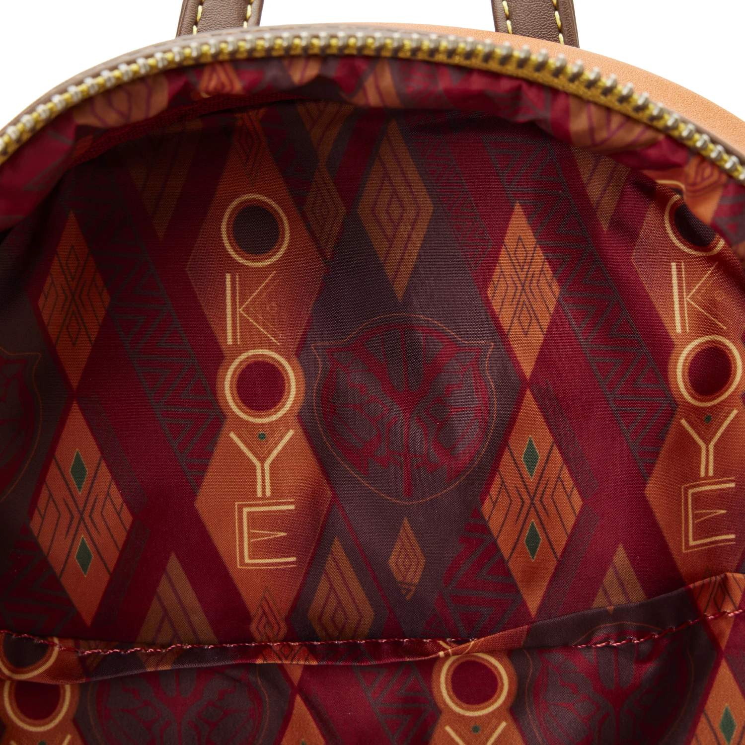 The Loungefly Black Panther Okoye Cosplay Mini Backpack is made of vegan leather (polyurethane). Bag has adjustable shoulder straps and sturdy metal hardware. Additional features include applique, debossed, embossed, top stitching, and printed details. Take note of the coordinating inside lining.