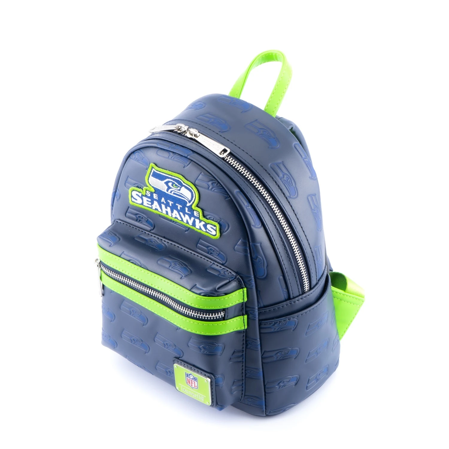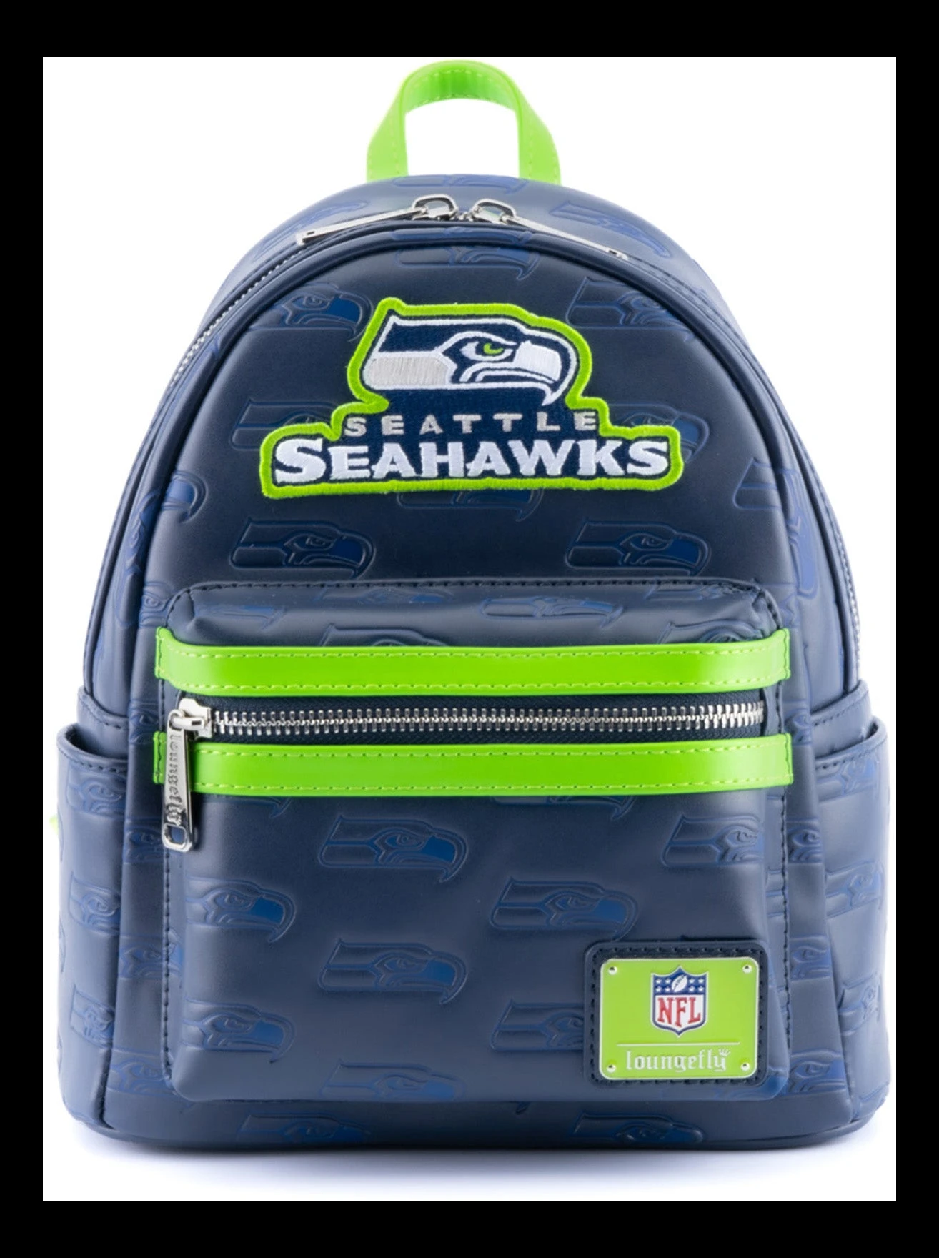Represent your favorite team whether you’re on your way to practice, a game, or just out running errands with the National Football League Loungefly accessories! This NFL Seattle Seahawks Logo Mini Backpack is a touchdown for any Seahawks fan. This dark blue backpack is covered in the team’s logo and features an embroidered patch of the team name on the front. It’s perfect for carrying everything you need to and from games.