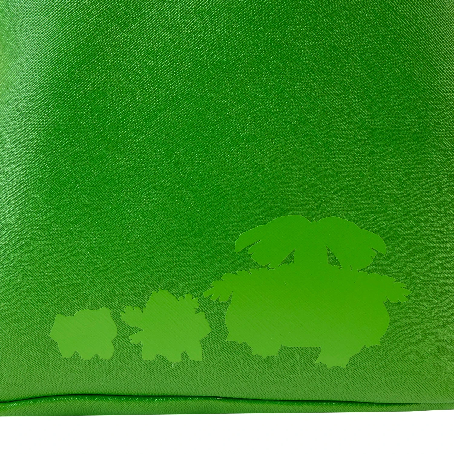 The Loungefly Pokémon Bulbasaur Evolutions Triple Pocket Backpack is made of vegan leather (polyurethane). Bag has adjustable shoulder straps and sturdy metal hardware. Additional features include debossed and printed details. Take note of the coordinating inside lining.