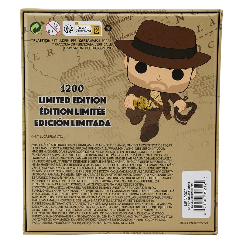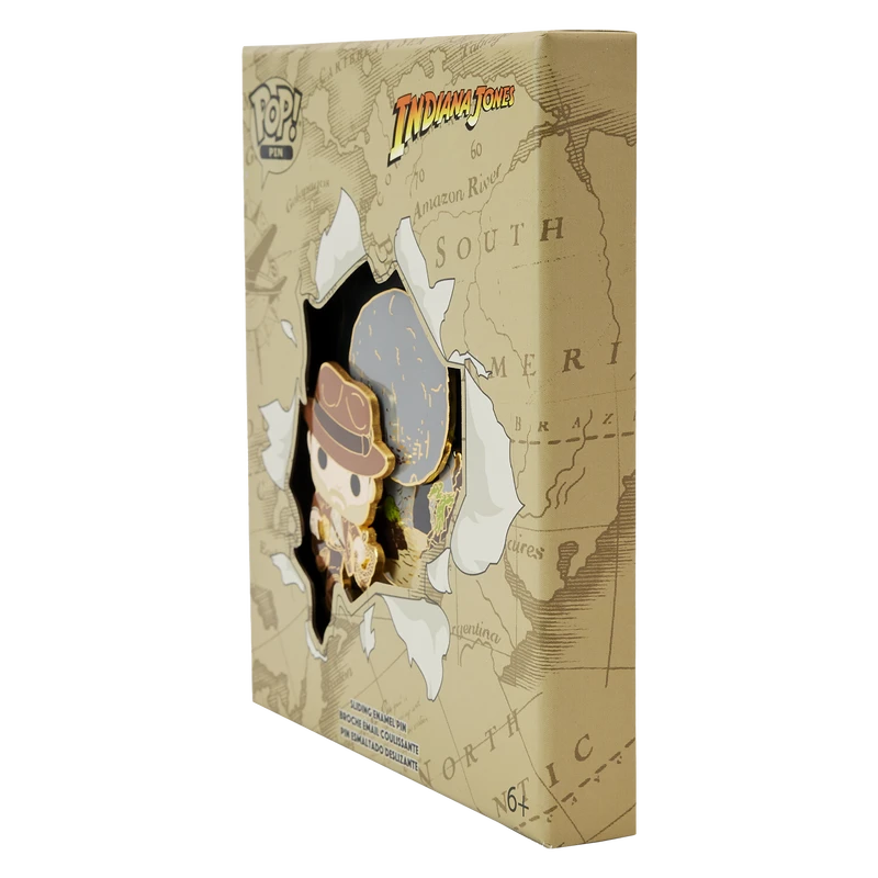 Rock a solid find you’re sure to treasure! Escape with our Loungefly Pop! Indiana Jones™ Raiders of the Lost Ark 3-Inch Collector Box Pin. This detailed, enamel layer pin features Indiana Jones as he runs from the boulder, the Golden Idol in hand. The boulder even slides on a rivet! Roll out the red carpet for this gem of a movie moment in your pin collection.