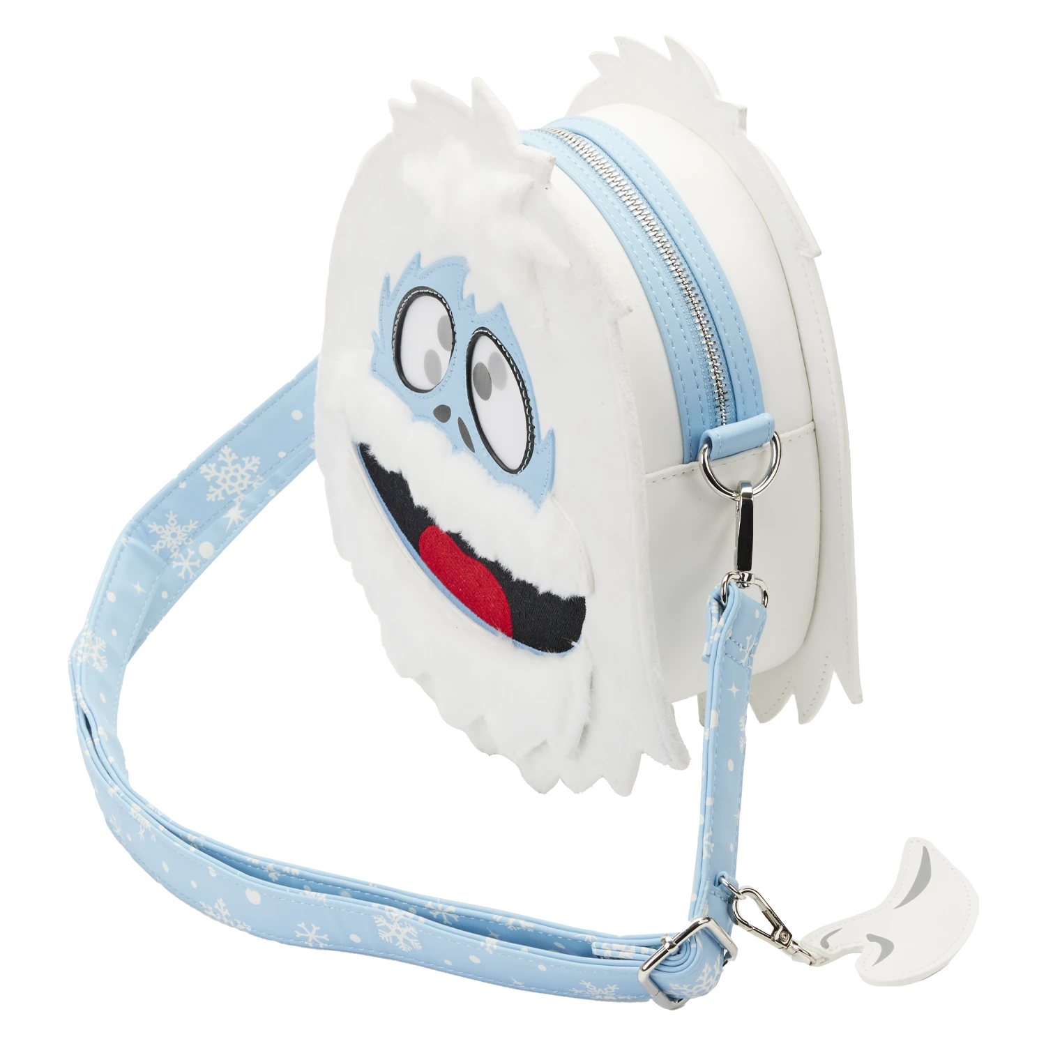 Don’t worry, this mighty humble Bumble is nothing without his chompers! The Loungefly Rudolph Bumble Head Crossbody Bag is all growl, no bite. Taking the form of the loveable abominable snowmonster, Bumble flashes a toothless grin after being bested by Hermey the dentist elf. Move the bag back and forth to see Bumble’s dizzy eyes shift in the light! A tooth-shaped bag charm rests near the furry monster, completing the scene. This larger-than-life accessory makes a playful addition to any outfit and is perfect for fans looking to keep one of their favorite holiday specials close.