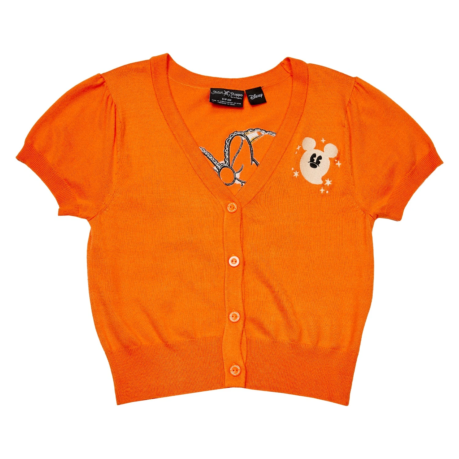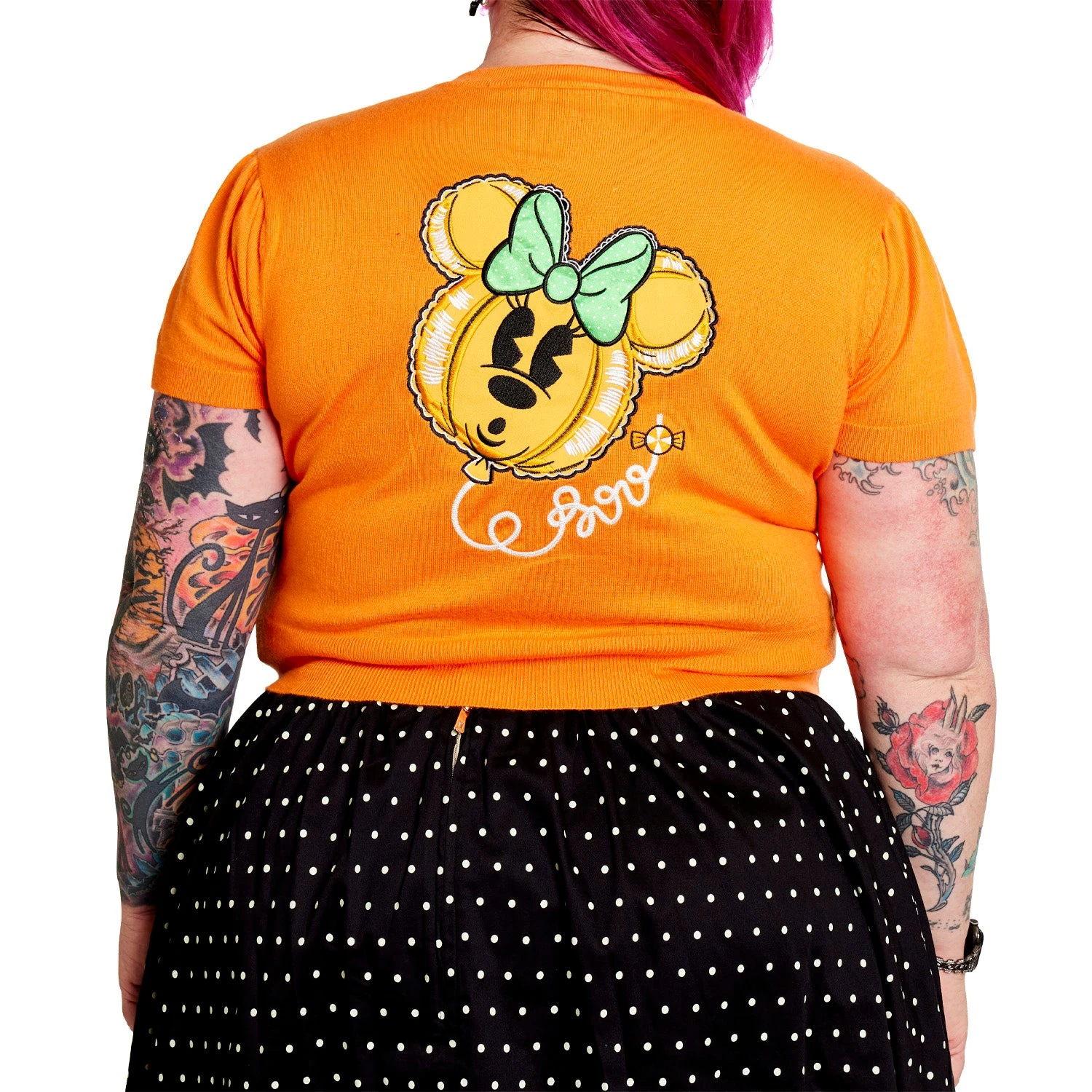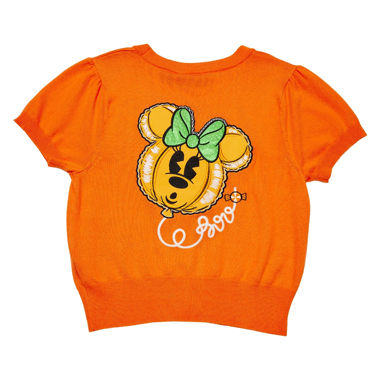 As pumpkin balloons line Main Street, U.S.A., don’t miss a beat. Float through the boutiques in festive style with our Stitch Shoppe Disney Minnie Mouse Spooky Balloon “Domonique” Puff Cardigan. We’ve elevated our fitted, crop top, button-down, V-necked cardigan with puffy sleeves and glow-in-the-dark details. On the front top corner of this pumpkin-colored cardigan, a small embroidered Mickey Mouse balloon appears, and it glows in the dark! On the back, the Minnie Mouse “mylar foil” pumpkin balloon is a fully embroidered applique patch. The string at the bottom spells out “Boo,” and at the end, you’ll find an orange and white-striped wrapped treat. Enjoy a boo-tiful day in the parks, or simply have a wickedly wonderful time at all your favorite haunts.