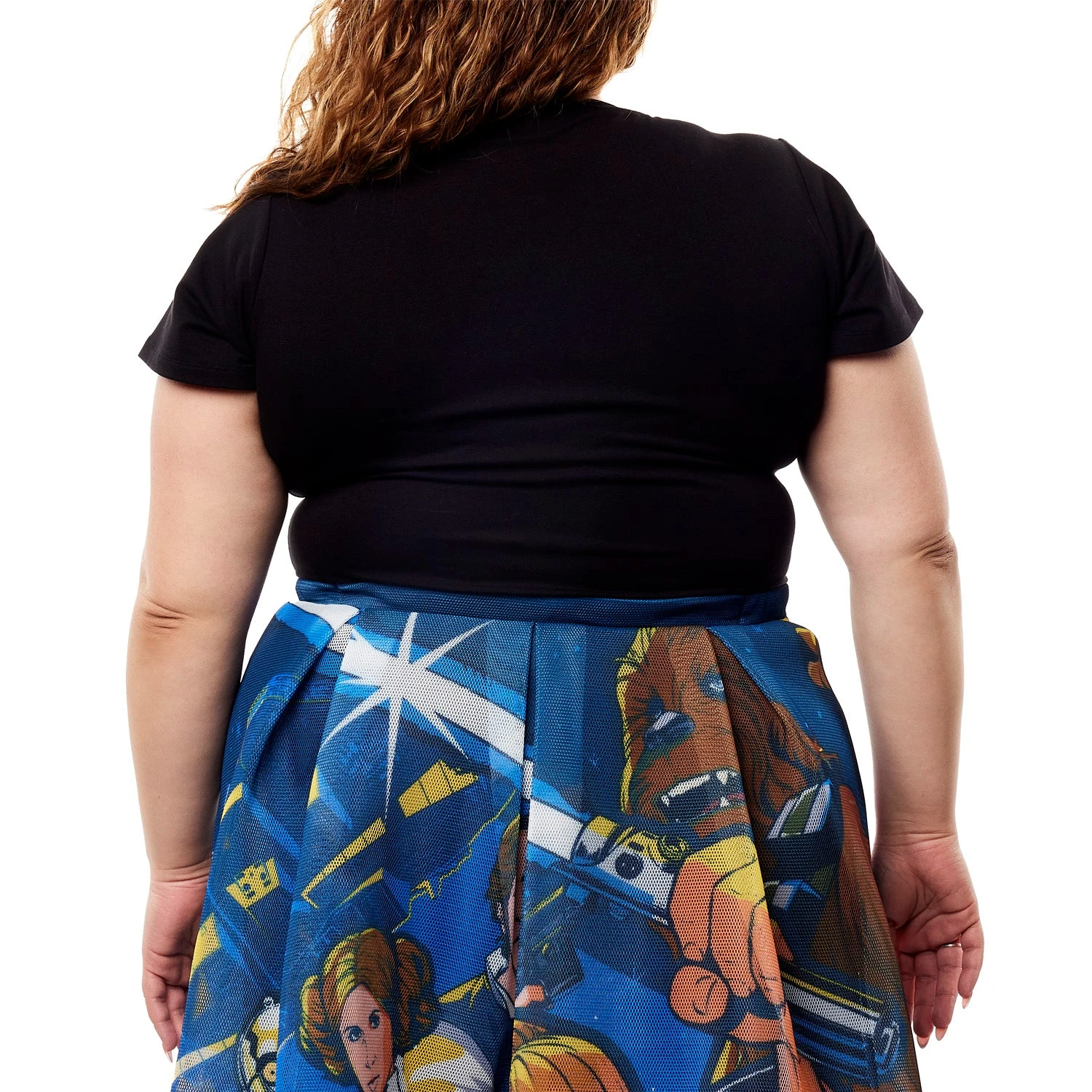We’ve got a bad good feeling about this! A galaxy far, far away takes a fashionable twist with the Stitch Shoppe by Loungefly Star Wars™ Space Logo Ariana Top. This retro design features the Star Wars logo printed in the center while iconic images from the series appear nearby. Red, blue, and yellow highlights give a trendy throwback look inspired by vintage comic books of eras past. Made with super soft jersey material, this trendy short sleeve shirt is a star for any wardrobe.