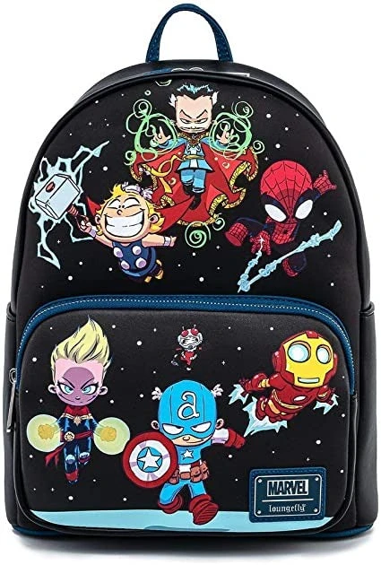 Keep some of your favorite Marvel superheroes close with the Marvel Scene Mini Backpack. Thor, Doctor Strange, Spider-Man, Captain Marvel, Captain America, and Iron Man move in to save the galaxy from Thanos’ next attempt to take over the galaxy.