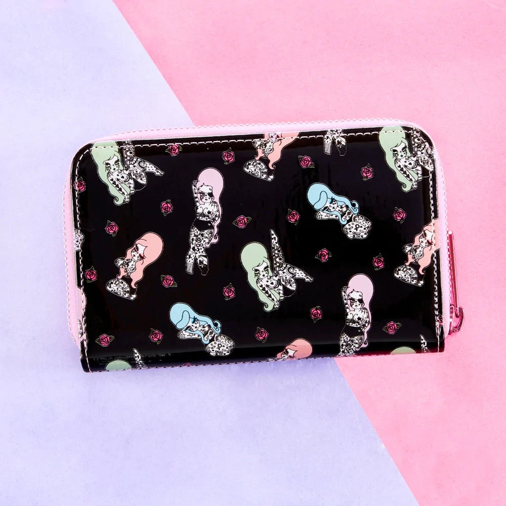 Discover a new dimension and keep it close to your heart with this Valfré Lucy Tattoo Zip Around Wallet. A debossed and printed motif of neon pink, blue, and purple silhouettes of vivacious, confident, tattooed women float among roses, which adds a whimsical and feminine touch.