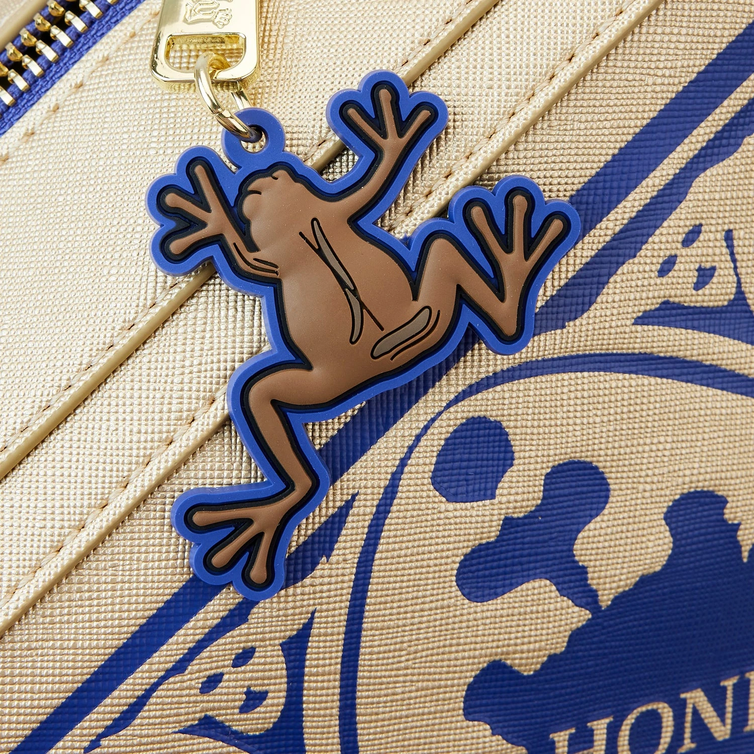 Board the Hogwarts Express™ in style with our Loungefly Warner Bros. Harry Potter™ Honeydukes™ Chocolate Frog Figural Backpack. This enchanting backpack takes on the characteristic geometrical shape of the Honeydukes Chocolate Frog box. On the front, you’ll find intricate designs, in metallic gold, of the Honeydukes logo. The center even comes to a point in the box’s characteristic style. The words “70% Finest Croakoa” add an authentic touch, and the bag is chocolate-scented! A silicone zipper charm of a chocolate frog completes the look. On the back, the chocolate frog makes an encore appearance. There’s plenty of room for your daily essentials—as well as a few sweet treats. Wherever you go, have fun making the sweetest of memories when you carry this accessory along.